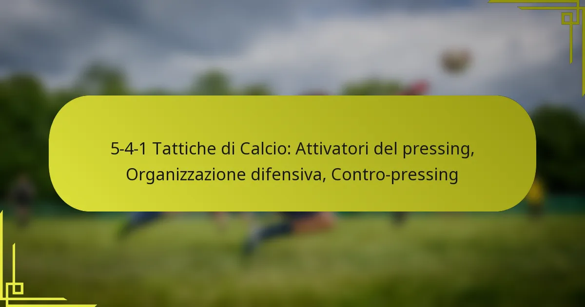 La formazione calcistica 5-4-1 è un assetto tattico che enfatizza una solida struttura difensiva mentre facilita rapidi contropiedi. Comprendendo i trigger di pressing, le squadre possono avviare efficacemente pressioni coordinate, migliorando la loro organizzazione difensiva e le capacità di contro-pressing. Questa formazione si basa su un posizionamento strutturato e una comunicazione chiara per mantenere la forma della squadra e ridurre le vulnerabilità contro gli avversari.